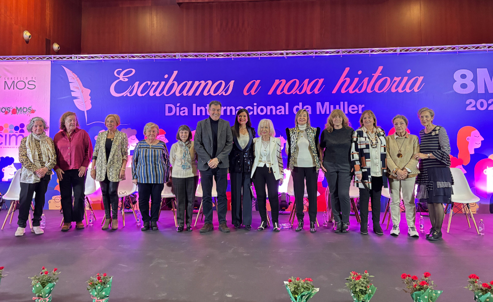 Las homenajeadas fueron Dolores Vila Carrera, Begoña Pérez Vila, Balbina Rodríguez Varela, Mª Encarnación Pérez Otero, Mª Jesús Rodríguez Pérez, Yolanda Morante Morante, Mª Sol Pombo Expósito, Mª del Carmen Vázquez González, Camino Delicado Muñoz, Mª Luz Carballo Gaspar, Mª de los Ángeles González Martínez y Teresa Castro López. Todas ellas, maestras y profesoras que contribuyeron a educar y acompañar a la ciudadanía de Mos desde diferentes centros educativos y etapas, fueron protagonistas indiscutibles del acto central del 8M en el municipio.