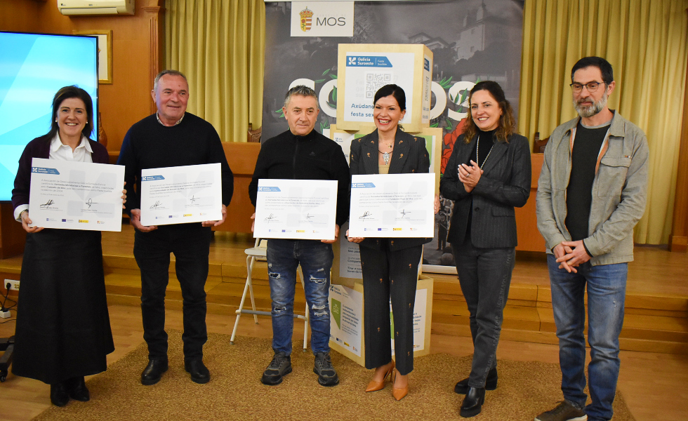 El municipio de Mos acogió el acto de reconocimiento a las cinco fiestas que participaron como proyectos piloto en el programa Festa Sostible durante 2024, destacando su compromiso con la sostenibilidad. En el evento, presidido por la alcaldesa de Mos, Nidia Arévalo, también estuvieron presentes la presidenta de la Asociación de Desarrollo Galicia Suroeste Eurural y alcaldesa de Tomiño, Sandra González, y el representante institucional del Xeodestino y alcalde de Pazos de Borbén, Luciano Otero.
