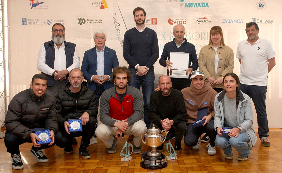 El Náutico de Vigo celebró la entrega de premios en su Salón Noble, con la presencia de su presidente, Antonio Pérez “Tone”, junto a Miguel Ángel Armada, director de Astilleros Armada; Manel Fernández, edil de Deportes; y Manuel Villaverde, presidente de la Federación Gallega de Vela. Durante el acto, el club entregó una placa conmemorativa a Miguel Ángel Armada en honor a la contribución de “Cholo” Armada al Snipe y a la historia del club vigués.