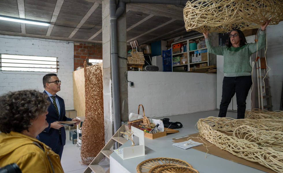 El conselleiro de Empleo, Comercio y Emigración, José González, visitó esta semana en O Porriño el taller La Parabólica, dirigido por la diseñadora y cestera Julia de la Cal, galardonada con el Premio Artesanía de Galicia 2024. Durante la visita, acompañado por el director general de Comercio y Consumo, Gabriel Alén, y la gerente de la Fundación Artesanía de Galicia, Elena Fabeiro, González destacó la apuesta de la creadora por una artesanía competitiva que fusiona el legado tradicional con una visión innovadora y multidisciplinar.