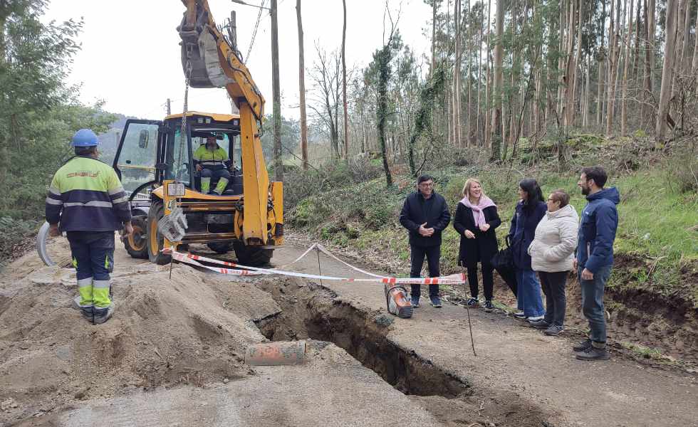 Las obras para dotar de servicio de saneamiento al barrio de A Presa avanzan a buen ritmo y según lo previsto. La alcaldesa, Loli Castiñeira, junto al concejal de Agenda Ecológica, Marcos Troncoso, y las representantes de la Asociación Vecinal de Parderrubias, María Rodríguez y Rosario Lorenzo, visitaron los trabajos para comprobar su evolución sobre el terreno.