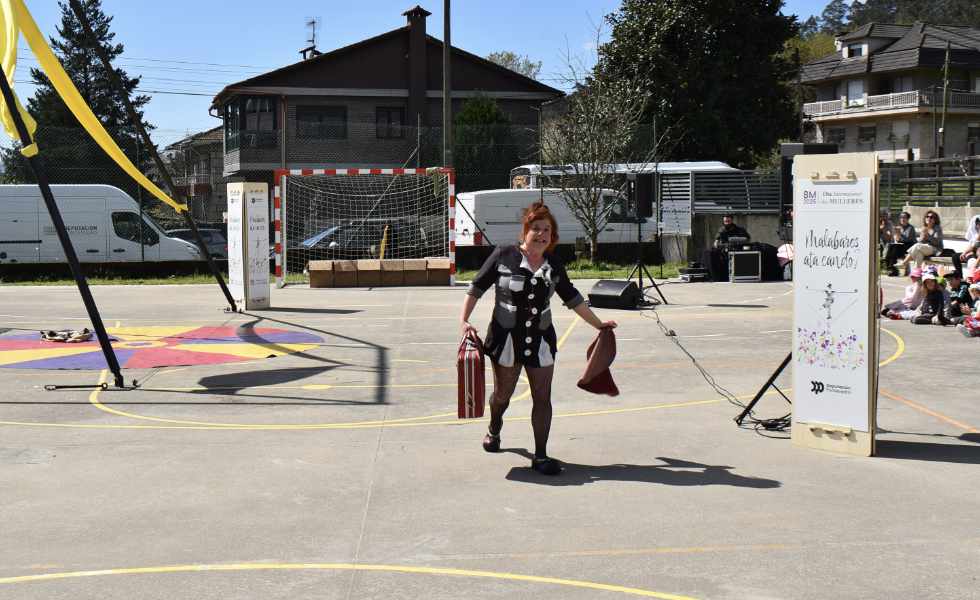 El espectáculo Cirqueiras, promovido por la Diputación de Pontevedra, llegaba ayer al CEIP Mestre Martínez Alonso en Mos como parte del programa municipal por el 8M titulado Escribamos nuestra historia, dedicado a las educadoras del municipio.