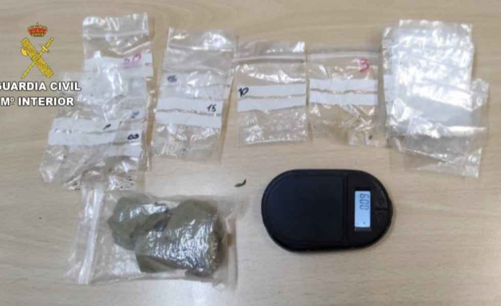 Además de la sustancia intervenida, los agentes hallaron en el interior del vehículo una balanza de precisión y un bote de plástico de chicles que contenía diversas bolsitas tipo zip vacías, algunas de ellas con anotaciones manuscritas en su exterior con las cifras “20”, “15”, “10” y “5”, lo que hace suponer que se trataban de precios de venta por unidad o por cantidad.