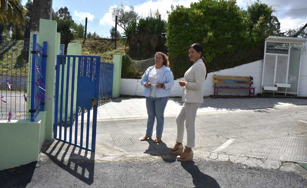 La alcaldesa, Nidia Arévalo, y la concejala de Educación, Julia Loureiro, visitaron el CEIP Peña de Francia para supervisar la instalación de una pérgola y la preparación de la pista deportiva, dos de las mejoras más destacadas en este centro.