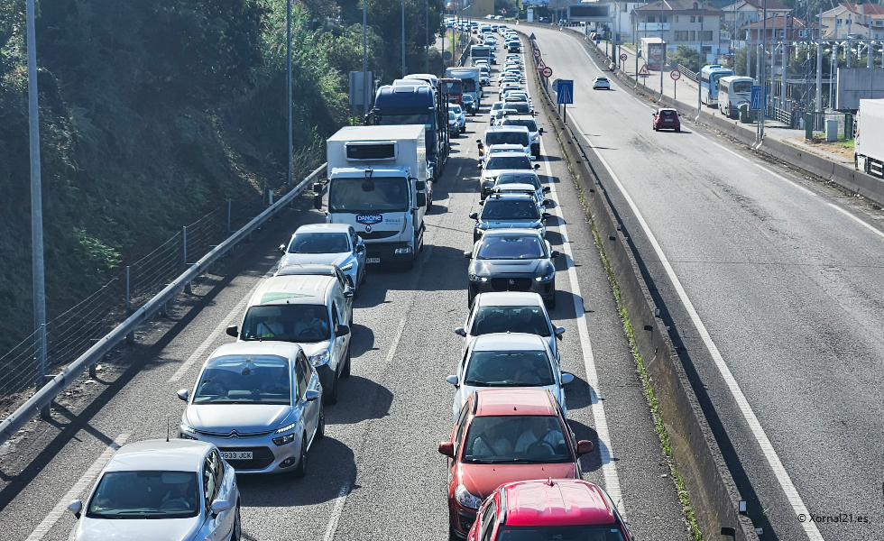 Caos vial en Vigo: retenciones de más de un kilómetro por las obras de la Avenida de Madrid