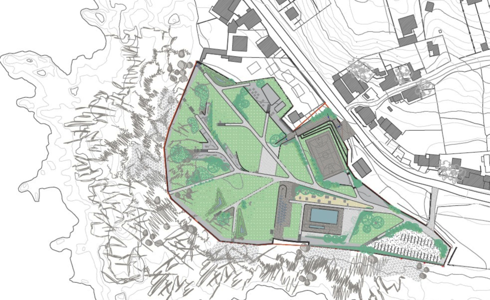 El futuro parque contará con equipamientos como piscina, solarium, área de fuentes de suelo, espacios infantiles, pista polideportiva, aparcamiento, bar, aseos y merenderos. Itinerarios accesibles conectarán todas las zonas del recinto, creando un espacio integrado y de fácil circulación para todos los visitantes.