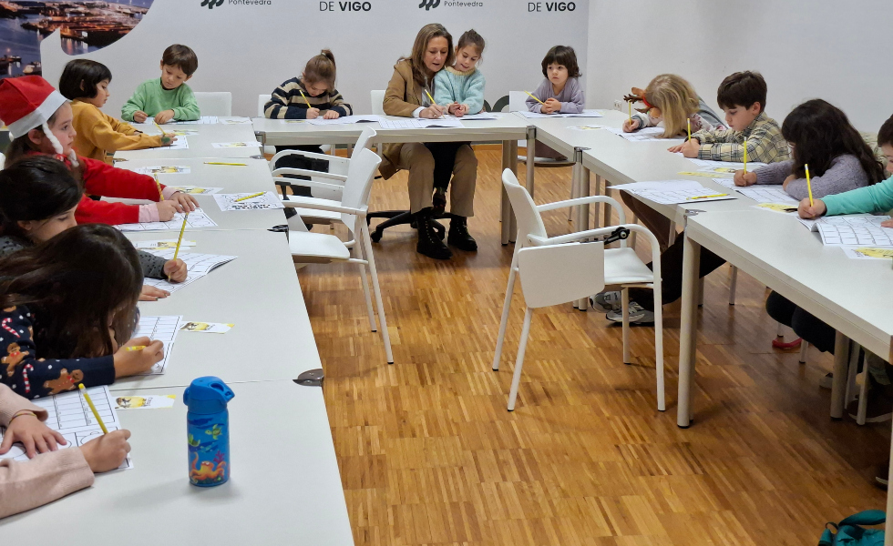 La programación cultural infantil de la Deputación de Pontevedra en su sede de Vigo ha cosechado un éxito rotundo de participación, con todas sus plazas agotadas desde su inicio el pasado 15 de noviembre. Así lo destacó este sábado la vicepresidenta provincial, Luisa Sánchez, durante una visita al Taller de Debuxo Tolo impartido por el artista Berto Fojo, una de las actividades paralelas a la exposición ‘O Bosque dos Contos’.