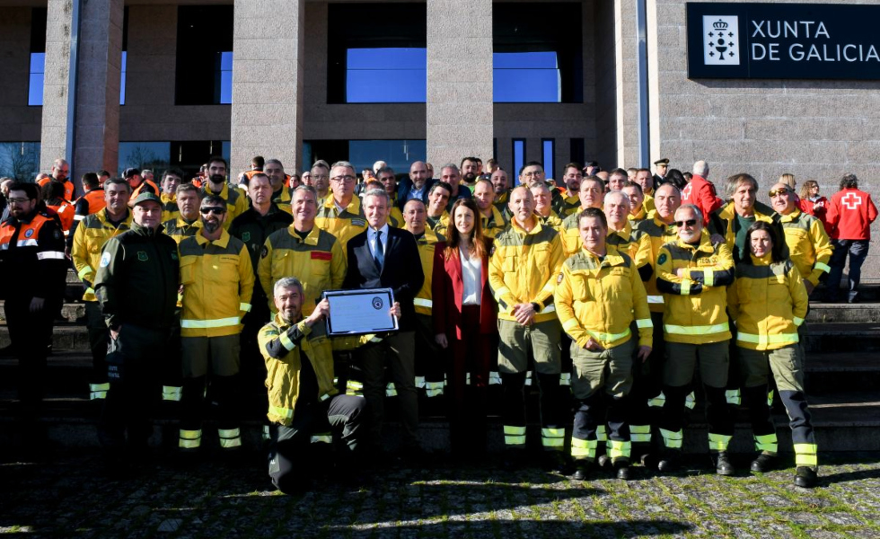 A solidariedade e o compromiso dos voluntarios foron os eixos do acto de entrega de medallas ao mérito de Protección Civil celebrado esta semana en A Estrada. O presidente da Xunta, Alfonso Rueda, acompañado polos conselleiros Diego Calvo e María José Gómez, puxo en valor o traballo en equipo das 236 agrupacións galegas, que contan cun récord histórico de 4.500 efectivos. Rueda agradeceu especificamente a súa intervención en episodios críticos recentes como a ola de incendios do pasado verán e a DANA de Valencia, pola que se concederon 53 placas de prata a voluntarios e profesionais que participaron no dispositivo coordinado dende Galicia.