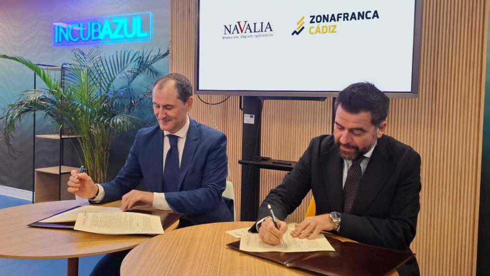 El puente entre el Atlántico y la industria naval gallega se estrecha. La Zona Franca de Cádiz participará por primera vez con stand propio en una feria gallega, y lo hará en Navalia, la cita bienal del sector naval que se celebrará en Vigo el próximo mes de mayo. El delegado del Consorcio gaditano, Fran González, y el director de Navalia, Javier Arnau, han firmado un protocolo general de actuación que establece una alianza estratégica para desarrollar acciones conjuntas e impulsar nuevos proyectos vinculados al ecosistema de la Economía Azul.