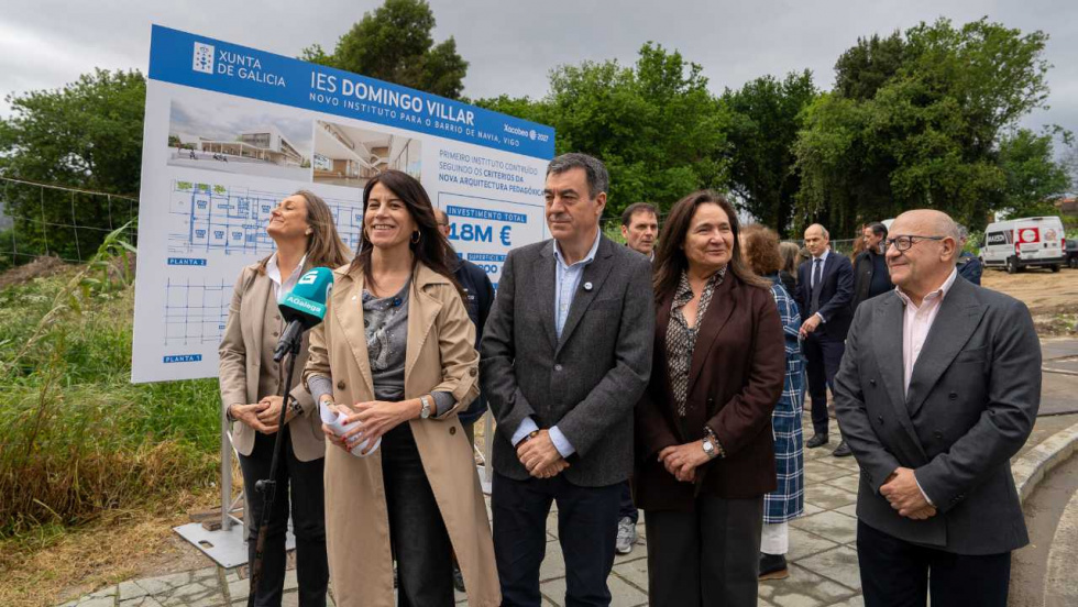 El conselleiro de Educación, Ciencia, Universidades e FP, Román Rodríguez, y la conselleira de Vivenda e Planificación de Infraestruturas, María Martínez Allegue, visitaron esta semana la parcela donde este mes se iniciará la construcción del nuevo Instituto IES Domingo Villar, en el barrio de Navia (Vigo), con un presupuesto autonómico de casi 18 millones de euros. Las obras comenzarán el 24 de abril, tras obtener todas las licencias y permisos necesarios, con la previsión de finalizar a finales del año 2027.